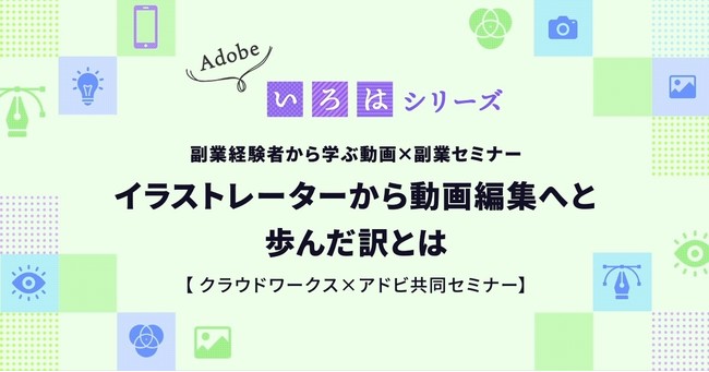 企業と個人をつなぐオンライン人材マッチングプラットフォームを開発・運営する株式会社クラウドワークス(本社:東京都渋谷区 代表取締役社長 兼 CEO:吉田 浩一郎 以下「当社」)が運営する、自分らしい働き方の実現をサポートするオンラインの学びの場「クラウドカレッジ」では、クリエイティブスキル獲得の支援を目的として、アドビ株式会社(以下、「アドビ」)およびインテル株式会社(以下、「インテル」)と共にオンラインセミナーを開催します。