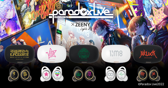「Paradox Live」×「Zeeny Lights 2」第二弾。「武雷管」「VISTY」「AMPRULE」「1Nm8」「獄Luck」のコラボレーションイヤフォンを受注販売開始。