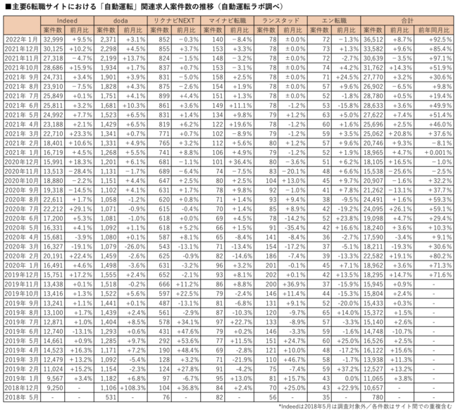 「自動運転」関連求人、前年同月比92.5%増の36,512件(2022年1月版調査)- 自動運転ラボ