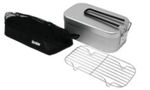 お米を炊いたり、パスタやパエリアも調理可能で、蓋の上に炭を置き、上下から熱を加えると、パンやケーキまで作ることができる超万能調理器具。軽量で持ち運びにも便利。