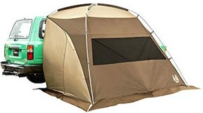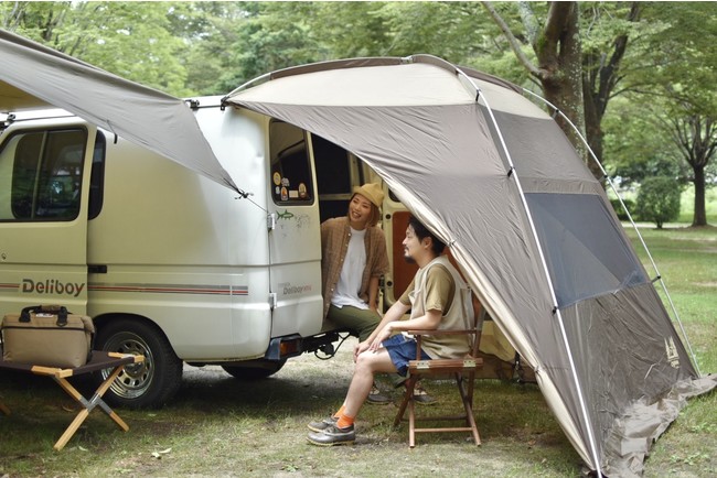 タープは使い方が難しいのに対し、カーサイドシェルターは冬でも風の影響を受けづらく、車の窓を開けると車もテントの中のようで、秘密基地みたいな楽しみ方が可能。最近は、車と一緒にキャンプを楽める道具が人気。
