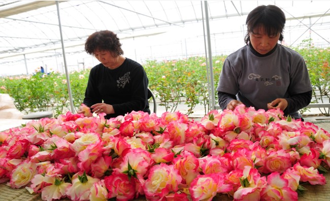 宮城県登米市迫町にあるナリス化粧品が所有する敷地面積、1万坪を超えるバラ園。観賞用でなく、化粧品の成分を抽出するためだけのバラを専用で栽培しています。ハウス栽培で、化粧品用のバラ5種を中心に10,000株以上栽培しています。20年を超えて、化粧品になるためのバラを育てる技術を蓄積した専門の職人による管理、栽培、採取を行っています。