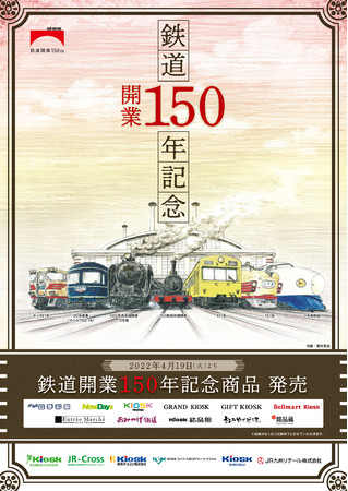 1872年10月14日に日本で最初の鉄道が開業し、2022年で150年を迎えます。これを記念し、全国のJRグループ駅ナカ小売り業6社による初の共同企画として「鉄道開業150年記念限定グッズ」第一弾を4月19日(火)より発売いたします。
