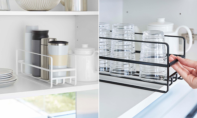マグボトルやコップの収納に便利なラック、ランドリールームの棚に取り付けることができる収納ハンガーが発売中です。