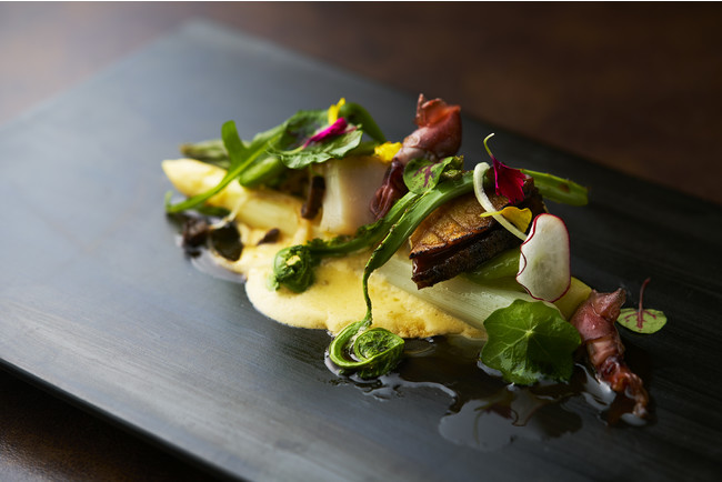 料理には、瀬戸内の昼網の魚介や、淡路島のフレッシュな野菜を中心に、日本各地から厳選した多様な食材を活用。伝統食材にとらわれすぎず、自由な発想で日本や世界の美味を組み合わせる挑戦が、シェフ山下の持ち味です。