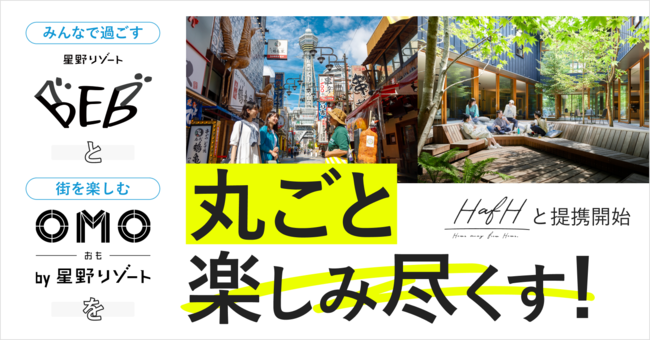 同時に、4月13日から、KabuK Styleが提供している旅のサブスクリプションサービス「HafH(ハフ)」で、星野リゾートが展開する旅のテンションをあげるホテル「OMO(おも)」と、ルーズに過ごす滞在を提案するホテル「BEB(ベブ)」の、全13施設の予約受付を開始します。今後も、予約可能施設の拡大を順次予定しています。