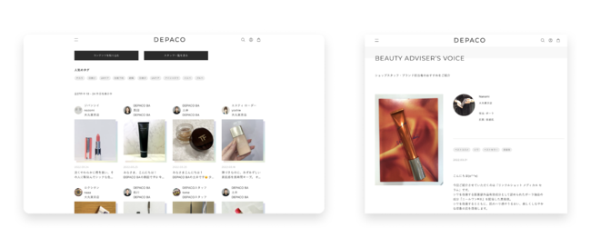STAFF START導入により、「DEPACO」に販売員個人が撮影したコスメ画像や使用方法の説明が投稿されます。