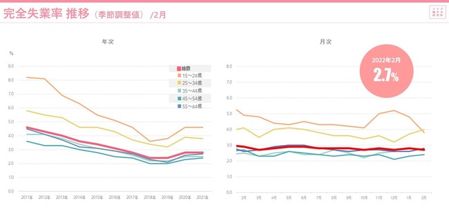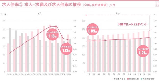 2022年2月度の有効求人倍率は1.21倍。完全失業率は2.7% 労働市場データレポート(2022年2月度版)