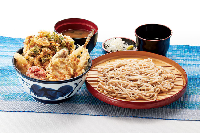 ごはんが小盛りの『初夏小天丼』とそば(またはうどん)が一緒に楽しめるセットです。