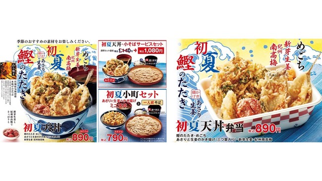 天丼てんや初!「鰹のたたき」を天ぷらに!『初夏天丼』が4月25日(月)より期間限定で発売、ごちそうシリーズから『ごちそう天丼(初夏)』も同時発売