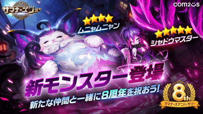 『サマナーズウォー: Sky Arena』新モンスター「シャドウマスター」&「ムニャムニャン」登場!史上最大級の豪華さの8周年記念イベントも開催!!