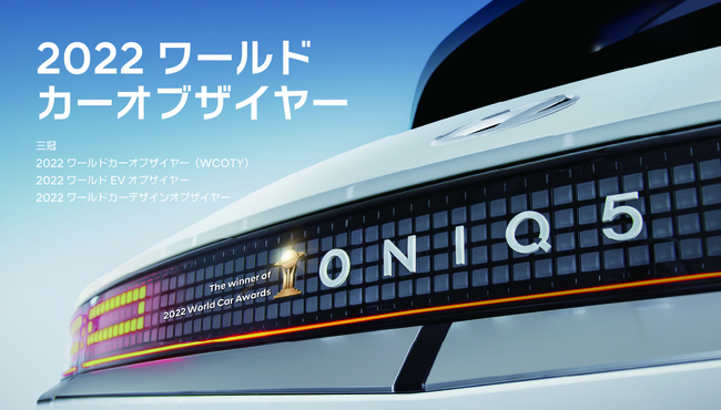 IONIQ 5は、昨年の世界発売以来、「ドイツ カーオブザイヤー」、「英国カーオブザイヤー」、「オートエクスプレス誌のカーオブザイヤー」、「オートビルド誌のEVオブザイヤー」など、権威ある国際的な賞を受賞し、2021/2022年のベストカーオブザイヤーでも初めてトップの座を獲得しました。