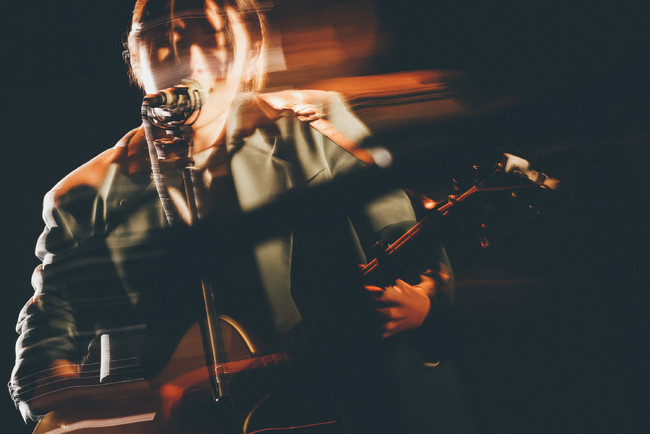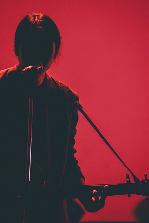 カーマインに染まった空間でわざと品なくガナってみせるロカビリー風の「日暮れは窓辺に」。ゆったりとした一語一句が染み入るバラード「スープが冷めても」。曲調は違っても小林のオーラは変わらない。何より凄いのは歌から放たれる毒気だ。オーガニックな有機物ではない、危険な毒だとわかっているのに、自分からそこに当たりに行きたくなる色っぽさ。ギターの弦を叩きつけハードに歌い上げる「目下II」が終わる頃には「あっちぃ」の一言。スタート当初は「さみー」から始まったライブだったが、たった一人のめくるめく歌声によって現場の温度は確かに上昇していた。