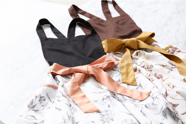 シンプルながらもトレンド感あるデザインやサイドのリボンがポイントの「着る」エプロン