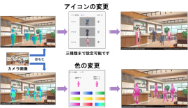 匿名化アイコンを、ユーザー指定の画像(3種類まで可)に置き換えることができるようになりました。また、匿名化アイコンの色を9色から選択できるようになりました。これにより、匿名化アイコンをマスコットキャラクターやイメージカラーで表示できるようになり、施設・店舗の混雑可視化に加えて、魅力発信のコンテンツとしても利用できるようになりました。