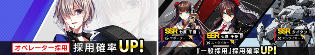SSRオペレーター「アナスタシア・チェルノワ」ならびに、SSR「七原千冬」「七原千夏」「タイタン」のピックアップ採用(ガチャ)をそれぞれ開催いたします。