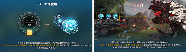 5日間の浄化期間と2日間の清算期間からなる1週間をワンシーズンとし、浄化期間中は「アリーナ浄化」と「レイド」をプレイすることができます。