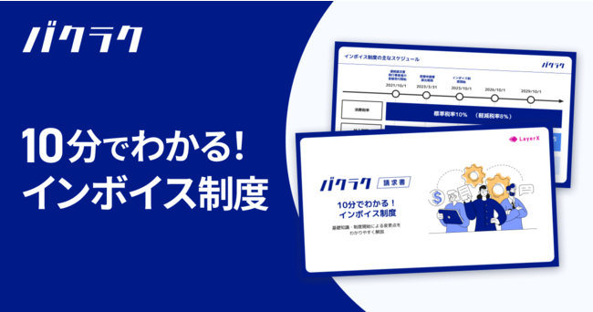 株式会社LayerXが提供する請求書受領ソフト「バクラク請求書」をはじめとしたバクラクシリーズは、2023年10月1日に開始される適格請求書等保存方式(以下「インボイス制度」)を見据えて、経理担当者様向けの資料「10分でわかる!インボイス制度」を公開しました。