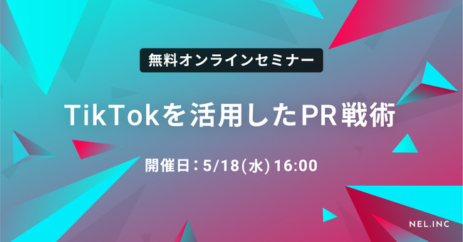 TikTokを中心としたSNSを活用し、企業のマーケティングを支援するNEL株式会社(本社:東京都渋谷区、代表取締役社長:西田 陸、以下NEL)は、5月18日(水)16:00より無料オンラインセミナー「TikTokを活用したPR戦術」を開催いたします。