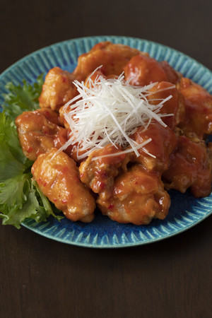 「足りないとは言わせへんで~」が信条の夏子さんの料理の特徴は、そのボリューム! おなじみのチキン南蛮も山盛りのタルタルを添えるのが夏子流。