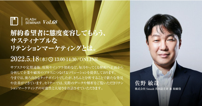2022/5/18(水)FlashセミナーVol.68【無料】解約希望者に態度変容してもらう、サスティナブルなリテンションマーケティングとは。