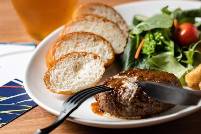 兵庫県香美町で牛匠・上田伸也さんが丹精込めて育てる但馬牛「但馬玄」を使った「煮込みハンバーグ」。神戸ビーフの牛すじ肉を煮込んだ後に丸一日熟成させた、パンにも合う「神戸ビーフカレー」。神戸ビーフの香りを包み込んだスモークビーフの「Nick自家製グラタン」からお選びいただけます。また、ディナーにはアルコールを含む約15種類から選べるワンドリンク付です。