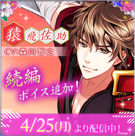 株式会社ボルテージ(本社:東京都渋谷区 代表取締役:津谷 祐司)は、提供中のボル恋タイトル「天下統一恋の乱 Love Ballad ~月の章~ 」(以下、「恋乱LB~月の章~ 」)において、 4月25日(月)より、猿飛佐助(CV:森川智之)の続編ストーリーにボイスを実装したことをお知らせいたします。