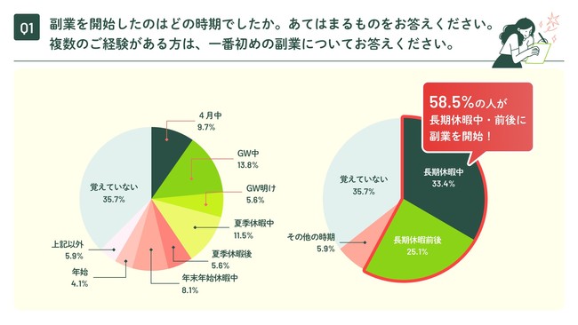 ・副業開始タイミングは、長期休暇中と長期休暇前後に集中。半数を上回る結果に。