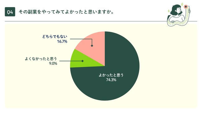 経験者からは、「生活にメリハリができた」「意外と自分に向いていた」「スキルに自信がついた」といったコメントも多く、実際に副業を経験してみることで結果的に不安が払拭されるケースも多いようです。