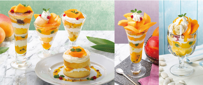 平日ランチタイム限定のスペシャルランチ・アンガスステーキランチや、グランドメニューのスペシャルセットの選べるプチデザート、及びプチ・ハッピーデザートセットは、プラス300円(税込330円)で「プチマンゴーパフェ」に替えられます。アップルマンゴー、マンゴーソルベ、パンナコッタを重ねた、満足感のあるプチパフェです。