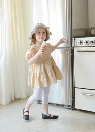 公園からお出かけまで、着ていく場所を選ばない、豊富な柄バリエーションと裾がふりふりでくるくる回りたくなるようなワンピース。(ポケット付き)