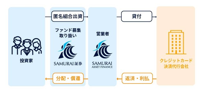 このファンドは、SAMURAI ASSET FINANCE株式会社(以下、「営業者」といいます。)が大手キャッシュレス決済事業者(以下、「本貸付先」といいます。)に対して貸し付けする、貸付型クラウドファンディングとなります。