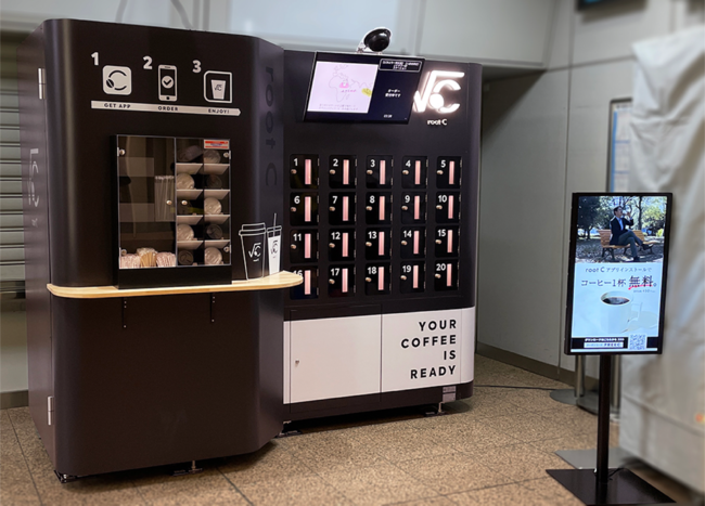 「root C」はアプリで時間と受け取り場所を指定し、完全無人・非接触でスペシャルティコーヒーを受け取ることができるAIカフェロボットです。ユーザーは「root C」の前で待つことなく、移動途中に注文も可能。パーソナライズ診断 root C MATCH™ を利用して、ライフスタイルや嗜好に合わせたコーヒーをご提案します。単品購入の他、サブスクリプション(月額定額制)でご購入できます。