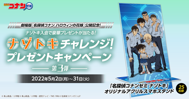●賞品:「名探偵コナンゼミ ナゾトキ」オリジナルアクリルスマホスタンド 25名様