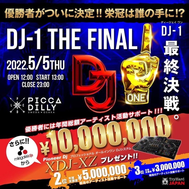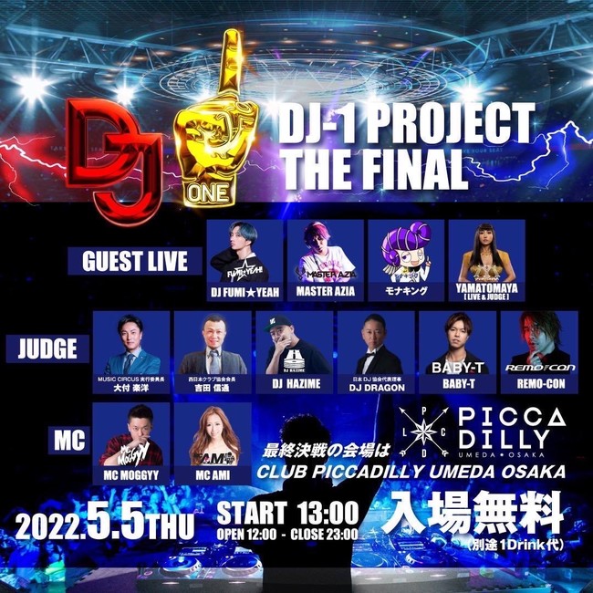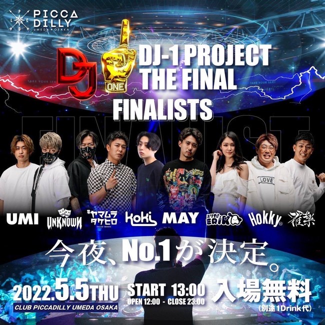 この8組によるDJ-1 決勝戦が、大阪梅田にある劇場型ナイトクラブ「CLUB PICCADILLY UMEDA OSAKA」で5月5日(木)に開催される。