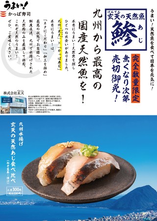 天然魚加工トップクラスの水産加工会社「玄天」×「かっぱ寿司」第二弾!“九州のあじ”