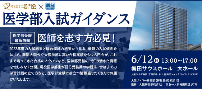 株式会社リソー教育(本社:東京都豊島区、代表取締役:天坊真彦)の子会社である、株式会社名門会(本社:東京都豊島区、代表取締役:吉田信司)は、医学部受験に特化した新ブランド「MEDIC名門会」にて6月12日(日)、「MEDIC名門会 × 駿台 医学部入試ガイダンス」を開催いたします。
