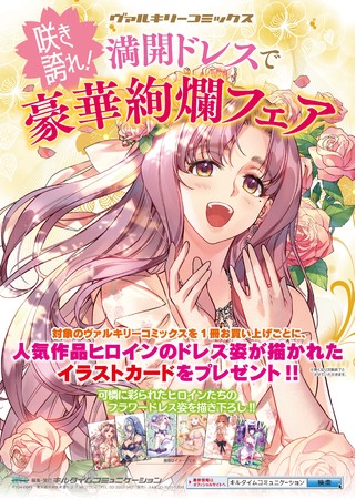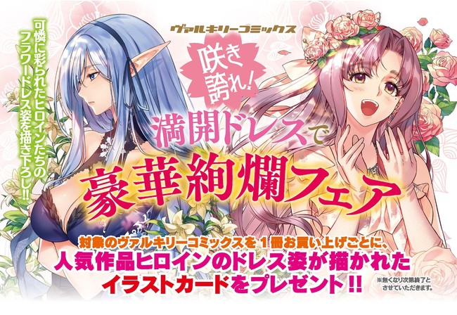 「ヴァルキリーコミックス 咲き誇れ!満開ドレスで豪華絢爛フェア」開催!対象書籍をお買い上げいただくと、フェア限定描き下ろしイラストカードをプレゼント!