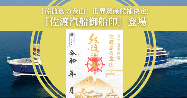 佐渡汽船(本社:新潟県佐渡市 代表取締役社長:尾渡英生)は、「佐渡島(さど)の金山」世界遺産推薦決定を祝し、下記の内容にて記念御船印の販売を開始しました。