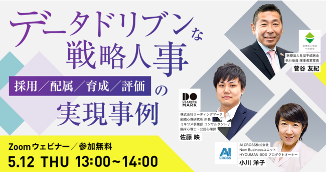 AI CROSS 株式会社(本社:東京都港区、代表取締役CEO:原田典子)は、この度、2022年5月12日(木)に開催される、「データドリブンな戦略人事(採用・配属・育成・評価)の実現事例」に登壇することになりましたのでお知らせします。