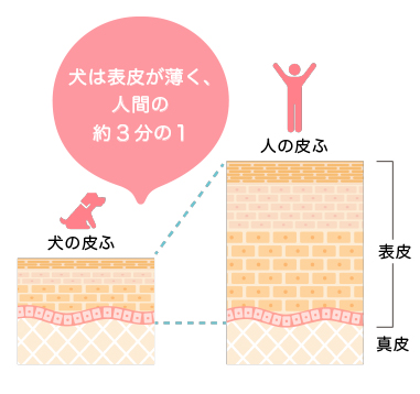 犬の表皮は「ヒトの1/3 程度の薄さ」しかなく、とても繊細で敏感だということが指摘されています。