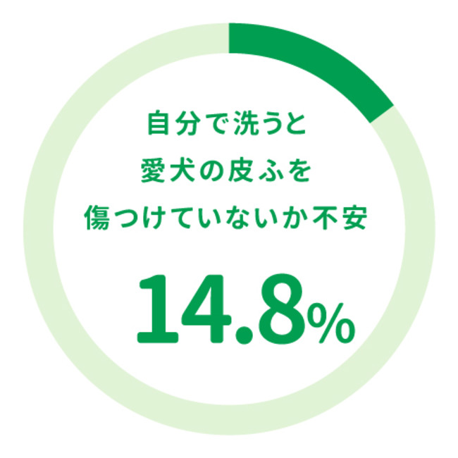 ● 一方で、「自分で洗うと愛犬の皮ふを傷つけていないか不安」と回答した人は14.8%と判明