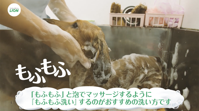 ▲実際に「もふもふ洗い」している映像。たっぷりの泡でマッサージするように洗ってあげることがコツ。