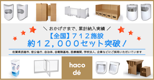 災害・感染症対策から生まれたダンボール製家具『hacode(ハコデ)』シリーズ、累計納入実績【全国】712施設・約12,000セットを突破!