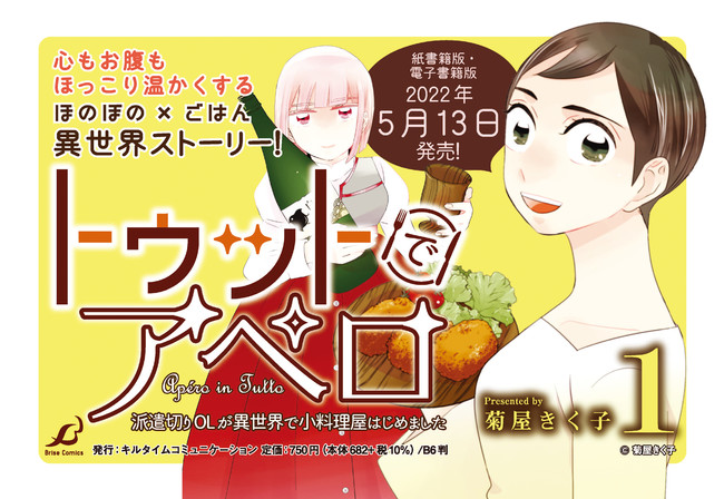 キルタイムコミュニケーション(東京都中央区)は、ブリーゼコミックス『トゥットでアペロ~派遣切りOLが異世界で小料理屋はじめました~ 1』を5月13日に発売いたします。