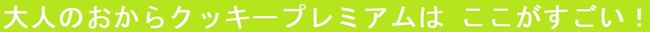 今回は、さらなる満足感と食感の良さ、健康的でダイエット中の方や女性に嬉しいおからクッキーを求め、試行錯誤を重ねた結果、誕生した【大人のおからクッキープレミアム】です。
