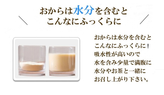 乾燥したおからは抜群の吸水力を持っていて、水分と一緒に食べるとお腹でグングン膨らむダイエット食材。