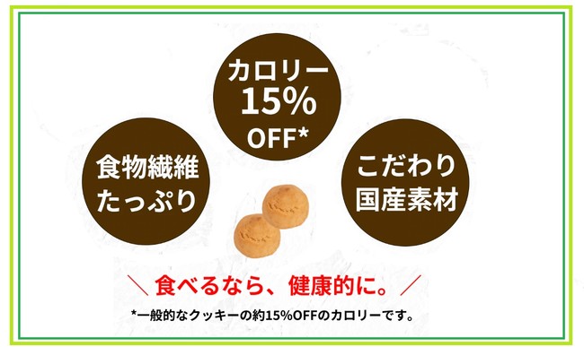 前回人気となったおからクッキーもヘルシーでしたが、今回のおからクッキーは一般的なクッキーより15%もカロリーをカット!
