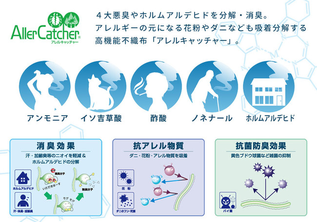 【 特徴2 】高機能不織布「アレルキャッチャー」で花粉・ダニなどを吸着して分解