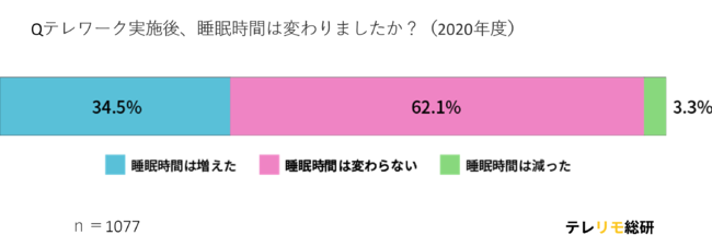 株式会社LASSIC(ラシック)(東京本社:東京都港区、代表取締役社長: 若山幸司、以下「LASSIC」)が運営する、「場所に依存しない働き方」を推進・支援する情報を発信するWEBメディア「テレワーク・リモートワーク総合研究所(テレリモ総研)」は、『テレワークによる睡眠時間の変化 2021年度版』を公開しました。